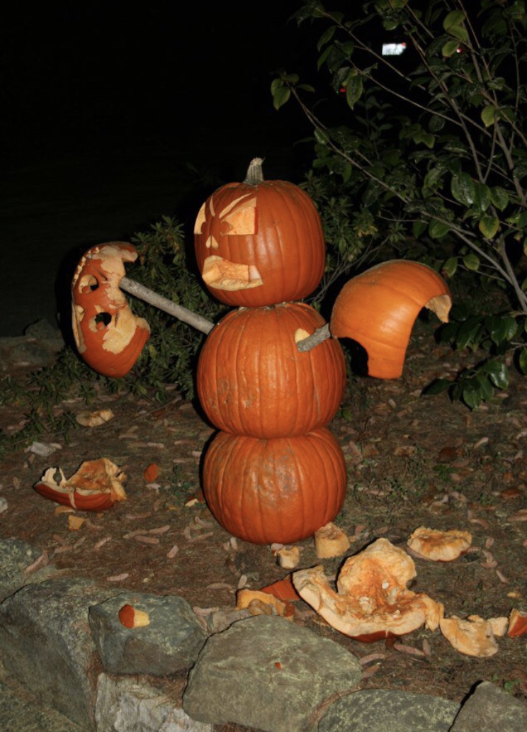 But what about a lovely carved pumpkin?, I hear you pumpkin-lovers exclaim. Don’t even get me started. No, just no. The mess! The pain of trying to slice a pattern into it, the competitive element, the “my pumpkin looks so much better than yours” thing between siblings, the tears when you chop the wrong bit off and the design gets ruined and yet another pumpkin needs to be purchased…. The smell of burning pumpkin seeds in the oven, when you were trying to find at least one decent thing about the pumpkin – roasted pumpkin seeds – but then were too busy tending to carving wounds and cleaning gooey mess off the floor so the dog doesn’t step in it and then drags the stringy goo all over the house, to actually notice the smell of burning in the oven until it’s too late. No, I don’t need a grimacing pumpkin with a fucking candle in it outside my house, sitting there, being gnawed at by squirrels and other dirty creatures that wouldn’t come near my house if it didn’t have a sodding pumpkin outside, and then slowly getting more mushy and disgusting as the days go by, until one dark and damp morning, you step into the smushy, globby mess on your way to your car, because it’s still dark because the bloody candle has long since stopped burning. And you end up with sticky pumpkin juice all over your shoes that will refuse to be washed off but will stain everything for the rest of the day, nay, the season…