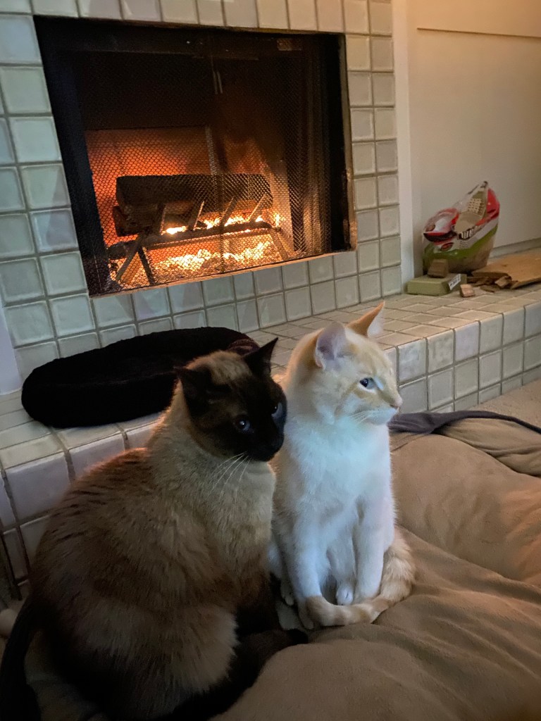 It’s not an experience I’m in a rush to repeat, but on a primal level, it was also interesting. At first I thought I’d be doing some exercise, some yoga stretches and push ups, to stay warm. But my body didn’t agree – and my mind was unable to persuade it to comply. My body was clearly telling me to conserve my energy, that all energy was needed to stay warm, and it was perfectly capable of doing so without additional stress such as exercise, thank you very much. At its lowest point, the temperature inside our house dropped to 4° Celsius (39° F), and only the fact that we have a gas stove in the kitchen so we could make hot tea and cook the (almost unaffected but still slowly melting) items from the fridge and freezer saved us from utter despair. I even made my favourite Northern German/Danish dessert, Rote Grütze, which I enjoyed with large quantities of homemade vanilla ice cream and Basque cheesecake, and our dinners huddled by candlelight, surrounded by the pets in front of our bijou fireplace will definitely be remembered. Yes, after five years in this house, we finally braved the wonky flue and lit a fire. Luckily, we had a couple of logs left over from making pizza the other day, but it wasn’t going to last very long. That’s when the neighbourhood community spirit was summoned, and I asked on Next Door if somebody close by had any firewood going. They did, and I grabbed a couple of carrier bags and embarked on a crunchy, slippery three-mile trek through ice and snow, feeling rather pioneer-ish. Unfortunately, I returned home to a burst water pipe, and my hopes of being celebrated as the heroine of the day were squashed amidst gushing water and rising panic that the ceiling would cave in and crash down onto our car. Of course, that meant no water, and by day four, we were so cold and miserable that we spent most of the day taking turns sitting in the car to warm up. S was literally working in his car for most of the time anyway, but coming back into a freezing house for cups of tea (now made from melted snow) wasn’t exactly a pick-me-up. We still couldn’t get out of our drive, which was more than frustrating, as the main roads were slowly looking a bit clearer.