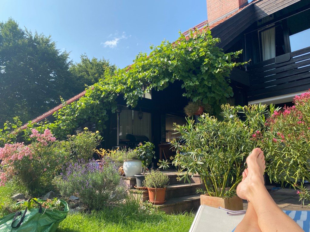 We felt pretty free and safe in Germany, from landing at an almost empty airport, seeing friends who were regularly testing themselves and general adherence to mask mandates and social distancing, then flew to England, where we had to quarantine for the duration of our stay (not a hardship, as my in-laws’ house and garden are beautiful), had to get tested a couple more times and were checked on by the track and trace people by phone each day. When we left, Heathrow airport felt clean, safe and calming, and our flight back to the US was only half full. Had it not been for the guy in the row behind us coughing persistently the whole time, I would have said the flight was easy-peasy.